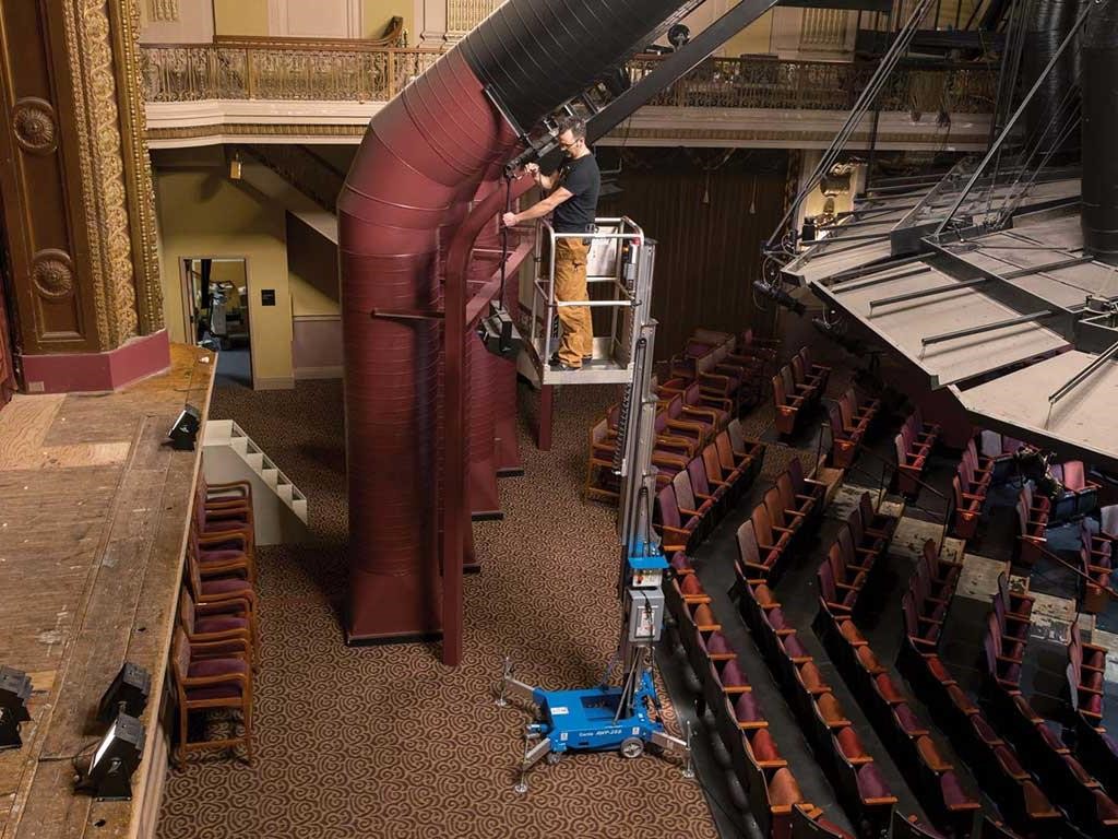 Genie® aerial work platforms are easy to use and cost effective, making them the first choice for a wide range of applications. One person can easily set them up and get to work within minutes, providing the ideal all-around tool for almost any access application. Their lightweight and compact size makes Genie aerial work platforms convenient to use in schools, churches, warehouses and more. Genie aerial work platforms also provide solutions for interior work on large construction sites, such as high rises, as well as being perfect for light-duty construction purposes.