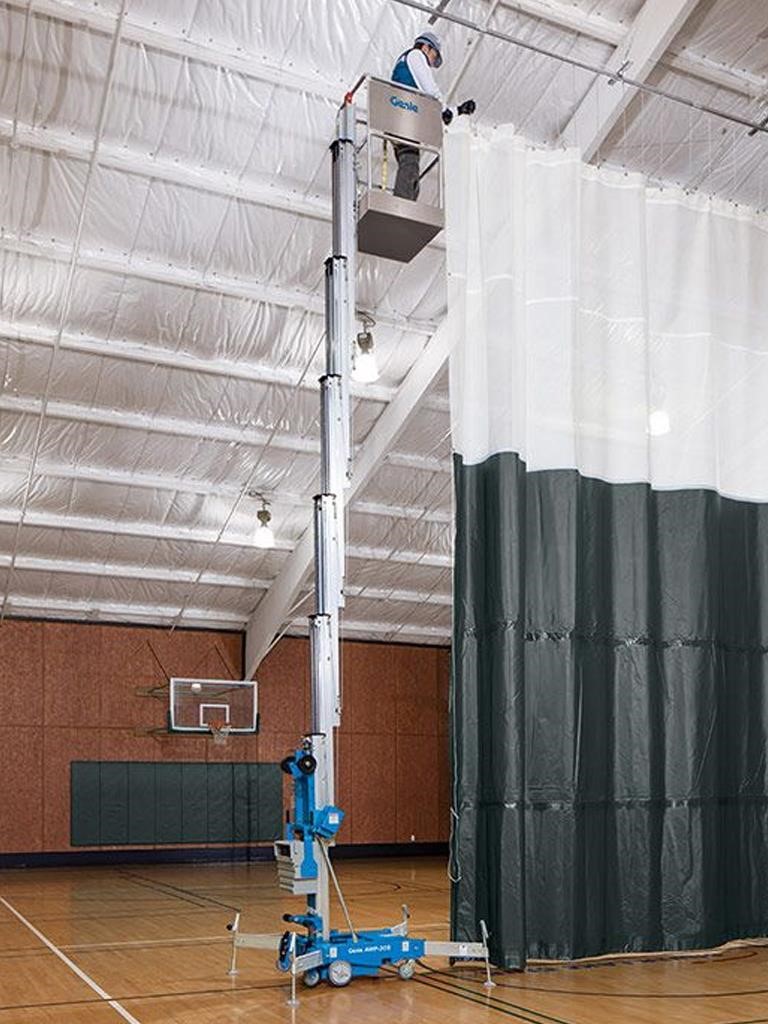 Genie® aerial work platforms are easy to use and cost effective, making them the first choice for a wide range of applications. One person can easily set them up and get to work within minutes, providing the ideal all-around tool for almost any access application. Their lightweight and compact size makes Genie aerial work platforms convenient to use in schools, churches, warehouses and more. Genie aerial work platforms also provide solutions for interior work on large construction sites, such as high rises, as well as being perfect for light-duty construction purposes.