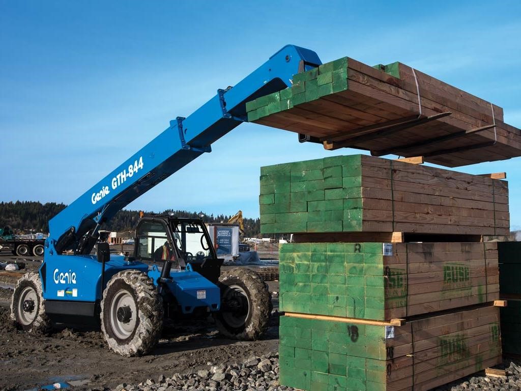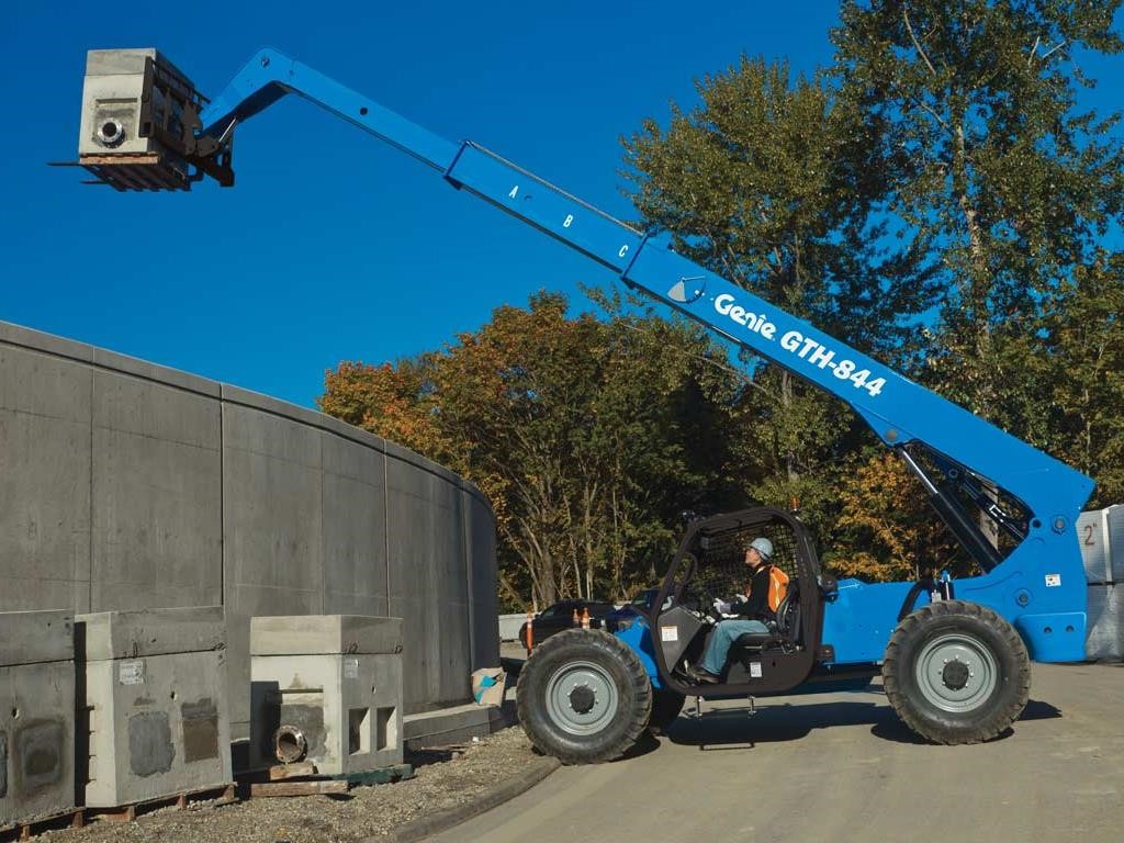 The Genie® GTH™-844 telehandler offers excellent lift capacity, making it an ideal machine for loading/unloading and moving/placing materials, as well as cleanup, on a variety of jobsites. Choose from an industry-leading 74-hp Tier 4 final Deutz 3.6L engine.