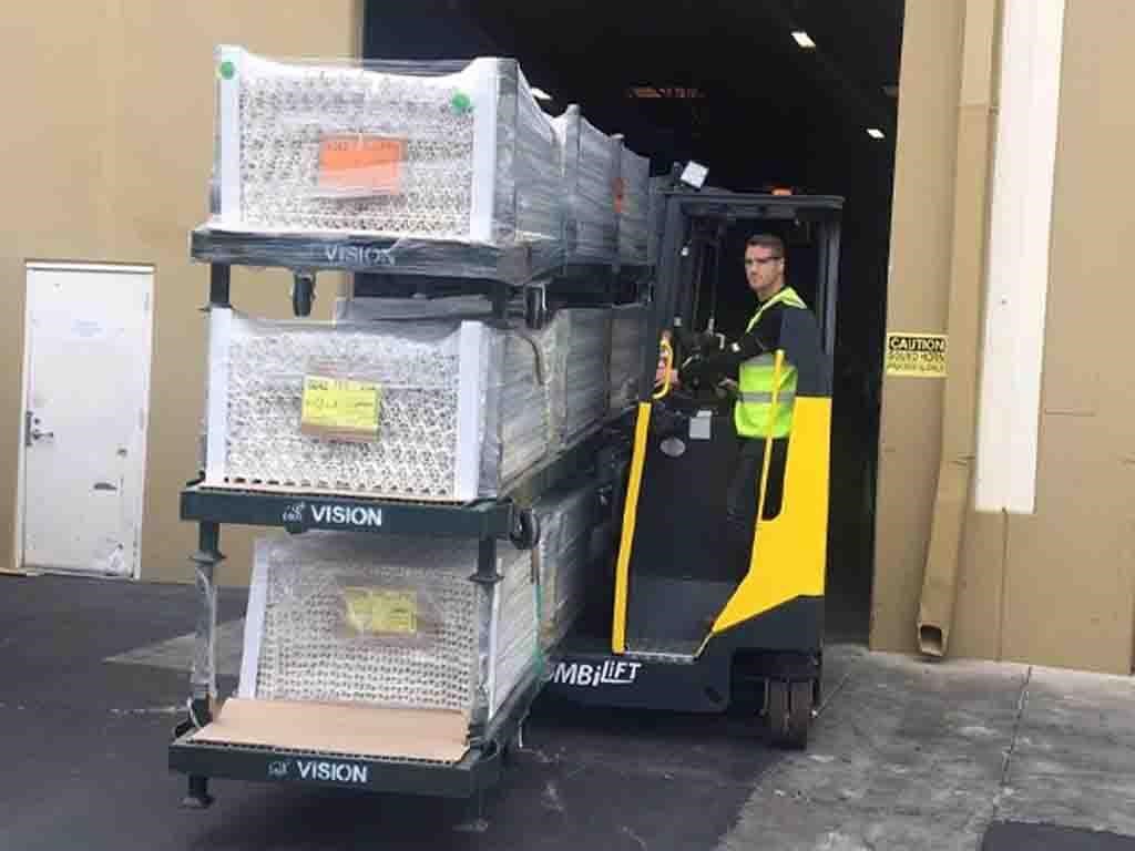 Combilift’s Multidirectional stand-on reach truck which offers superb maneuverability and safety in the tightest working conditions.