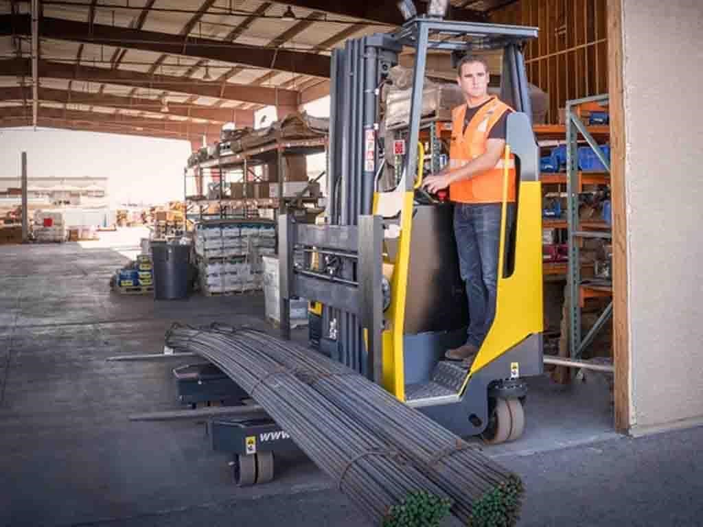 The multi-directional forklift designed for the safe, space saving and productive handling of long and bulky loads. Suitable for handling: Guided Aisles, Long Loads, Narrow Aisles and Palletized Goods.