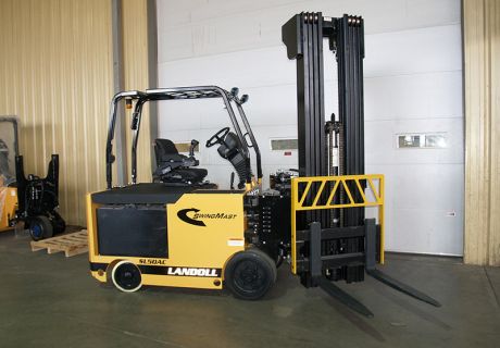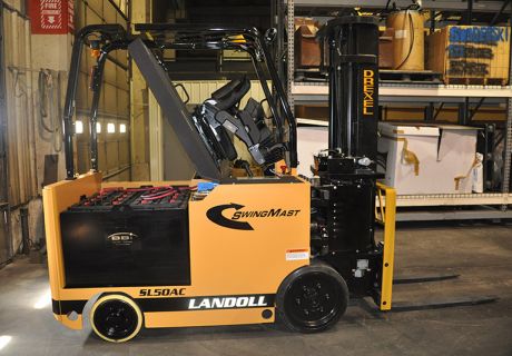The versatile SL30AC, SL40AC and SL50AC forklifts replace conventional reach and counterbalanced fork trucks in standard warehouse pallet handling operations. The unique design allows operators to use it as a counterbalance truck indoors or out, operates in very narrow aisles in the warehouse, replacing reach and counterbalanced trucks that require much wider aisles. The operator’s compartment is offset providing a long load carrying side deck so these trucks can be used as side loaders. The front tires are 20″ (500mm) diameter and the rear/steer tires are 14” (355mm) diameter providing great underclearance for avoiding floor obstructions. The rear steer axle is articulated to provide a smooth ride over rough floor conditions.
