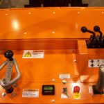 - Large operator platform with padded floor and hip pads