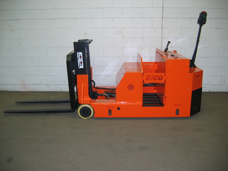 RICO’s walk behind counterbalance is designed for lighter capacities 6,000lbs and under. This design is offered in a walk behind version offering the operator maximum maneuverability and control. All vehicles are custom engineered to meet your specific application and towing requirements.