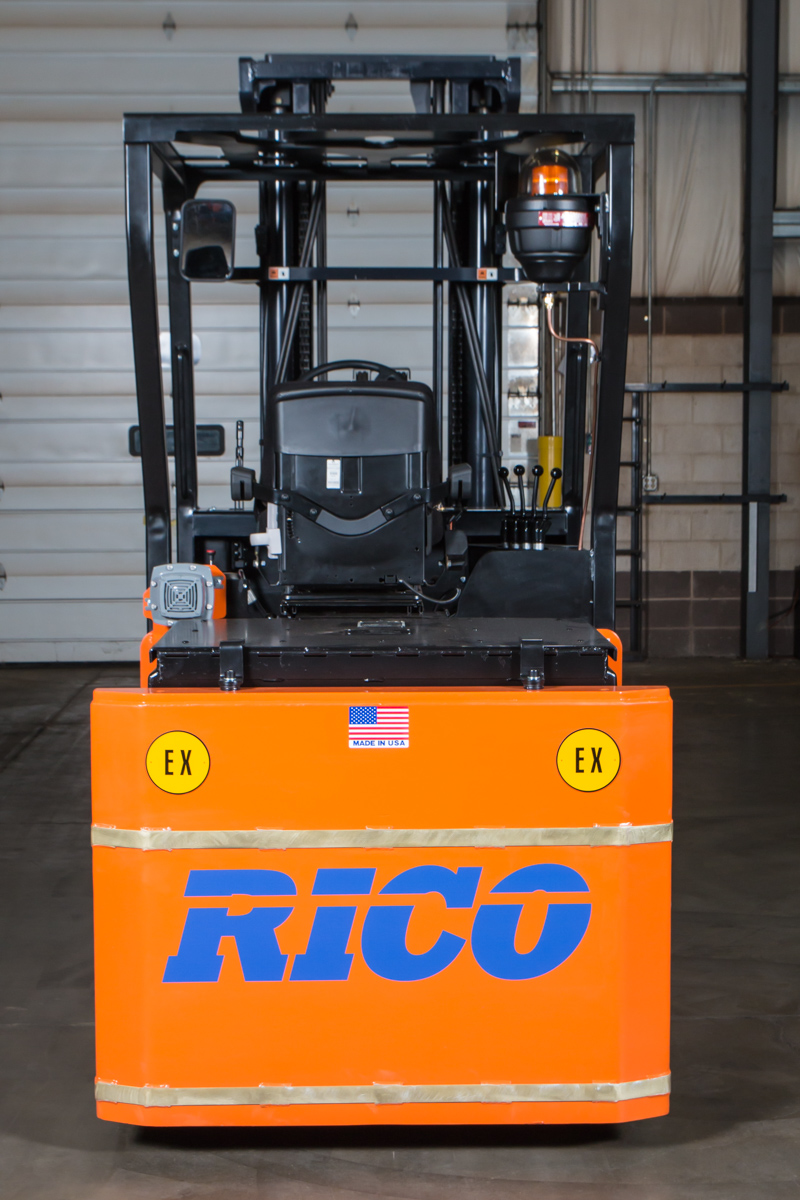 RICO’s EX Sit-Down Counterbalance series is at the top of its class when it comes to explosion-proof fork lifts. All vehicles are custom engineered to meet your specific application and hazardous load requirements.
