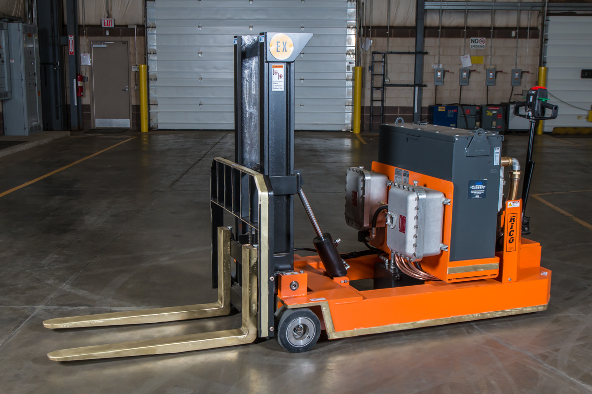 RICO’s EX Counterbalance series is at the top of its class when it comes to explosion-proof forklifts. This design is offered in a stand up Rider or walk behind version for maximum safety and comfort. All vehicles are custom engineered to meet your specific application and hazardous load requirements.