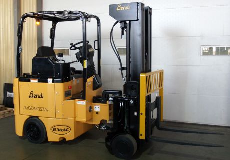 Bendi Rear Wheel Drive Narrow Aisle Multipurpose Electric ForkliftThe Bendi model B30AC/B40AC works in aisles as narrow as *78″ (1.98M), has a basic capacity starting at 3,000 lbs. (1361 kg) at 24″ (600mm) load center and has lift heights available to 26′ (7.92M).